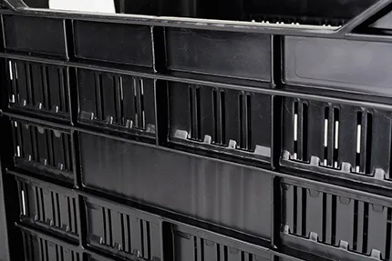 The agricultural crates are available with heavy duty vented sides and base. They are made from HDPE (high density polyethylene).