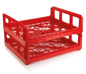 This strong and durable bread crate is high pressure plastic injection moulded and made from HDPE (high density polyethylene). The bread crate is also available in PP (polypropene). Original design, standard in height and size. Nests and stacks with all current plastic bread crates on the market.